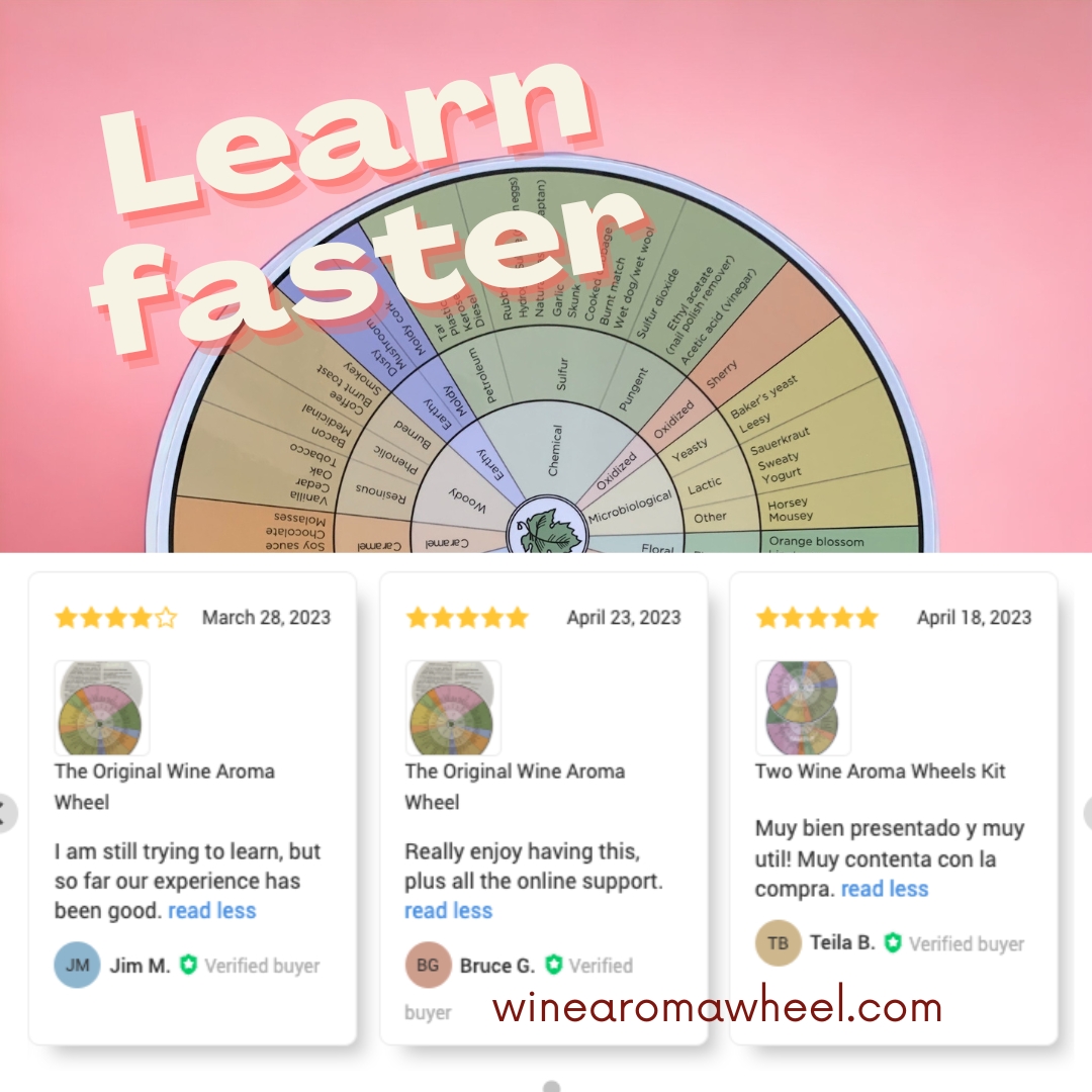 Includes two Original Wine Aroma Wheels and a downloadable Wine Tasting Kit.